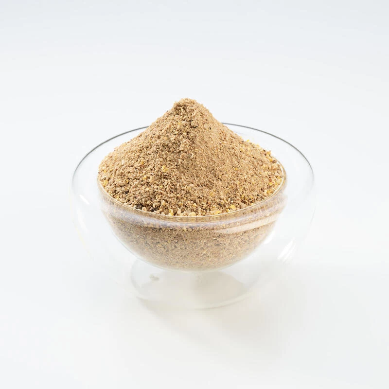 Chapelure, maïs, PV1 (blé, mélasse), tourteaux de coprah, coriandre (5%).