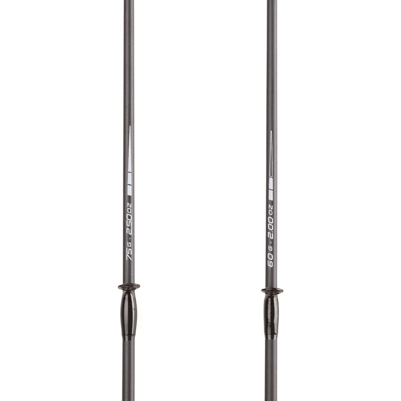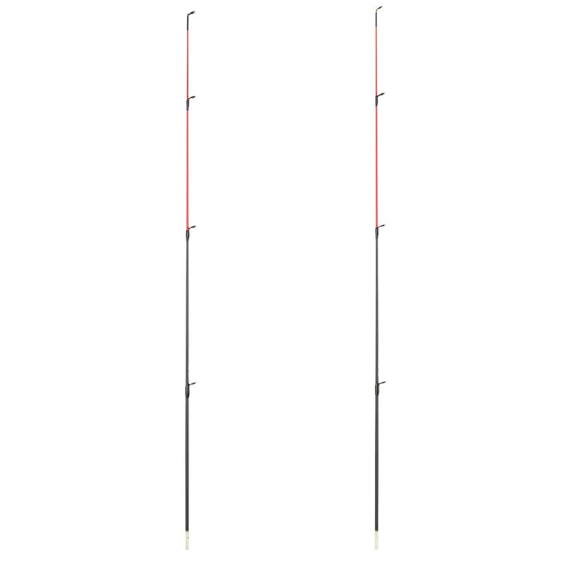 Les scions en carbone sont entièrement noirs à la base de l’emmanchement quand les scions en fibre de verre sont translucides.