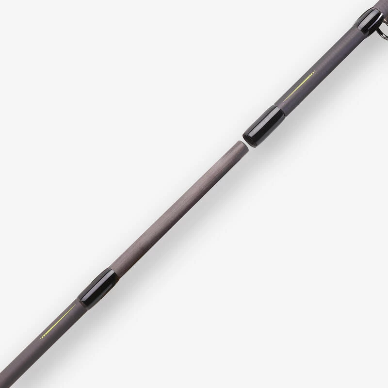 Les scions en carbone sont entièrement noirs à la base de l’emmanchement quand les scions en fibre de verre sont translucides.