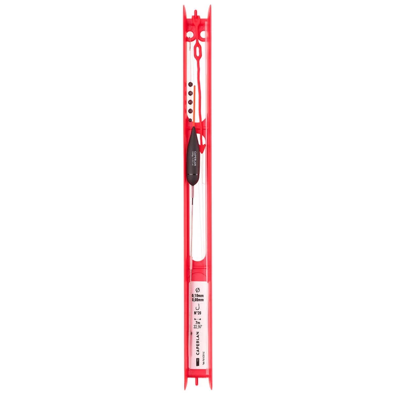 Ligne montée avec un flotteur sensible et stable spécialement développée par notre équipe de concepteur pour la pratique de la pêche au coup en canal.Ligne montée avec un flotteur ayant une antenne en fibre de verre de couleur orange, un corps en forme bouteille, une quille moyennne en acier inoxydable pour se mettre rapidement en action de pêche