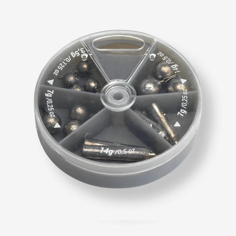 Conçu pour la pêche aux leurres souples avec un montage « drop shot ».Cet assortiment de plombs vous permettra de répondre à de nombreuses conditions de pêche lors de la réalisation de vos montages « drop shot ».