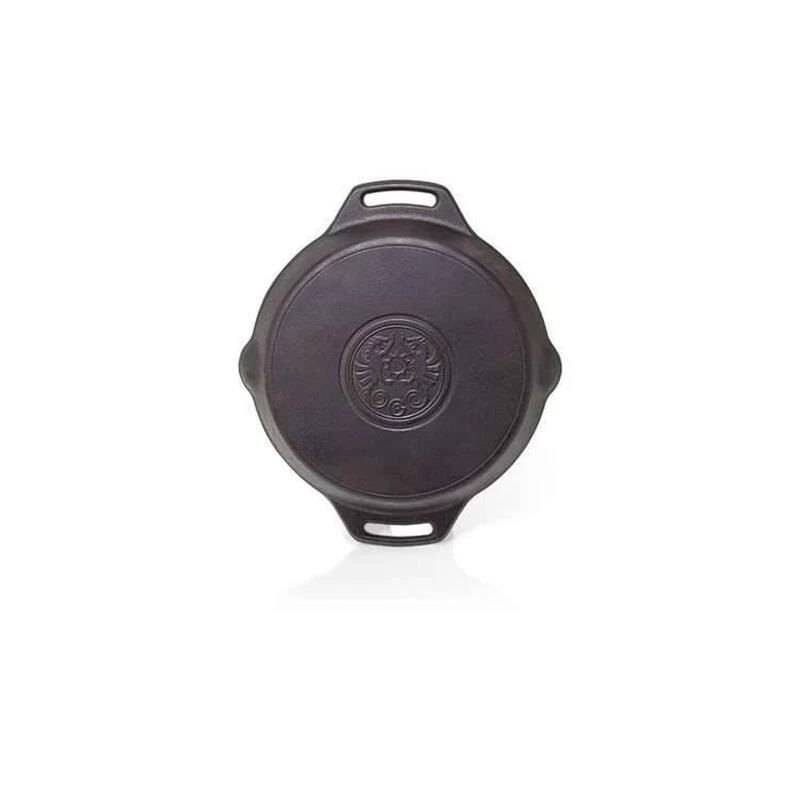 Cette magnifique poêle en fonte Petromax à deux poignées et mesure 35 cm de diamètre. Elle pèse un lourd 4,4 kg.